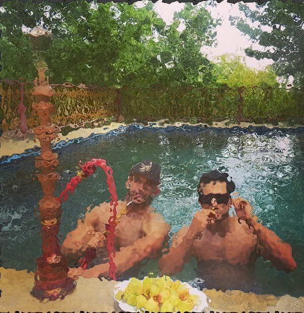 طبق ادعای گردانندگان صفحه، تصویر مربوط به ویلایی در کُردان کرج است. سمت چپ تصویر که مشخص نیست، تعدادی دختر و پسر هستند که برهنه روی تشک بادی در استخر کنار هم خوابیده اند. زیر این عکس، کاربری کامنت گذاشته: ما میریم لواسان همین طوره…