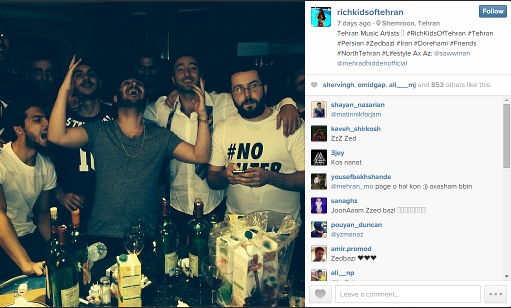 اما جزئیات تصاویر منتشر شده بسیار قابل تأمل است. همان طور که در نام این صفحه (Rich Kids of Tehran) قید شده، تقریباً تمامی تصاویر مربوط به جوانان ساکن شهر تهران است. این تصاویر مربوط به مهمانیها و اصطلاحاً دورهمیهایی است که در آنها خبری از عفت، حدود شرعی و انسانی نبوده و به شدت هر نوع حربم اخلاقی را دریدهاند، به قدری که علیرغم افکتهای تصویری به کار گرفته شده در این گزارش، همچنان از انتشار برخی از این تصاویر که هر روز آزادانه در صفحات اجتماعی انتشار مییابند، معذوریم.