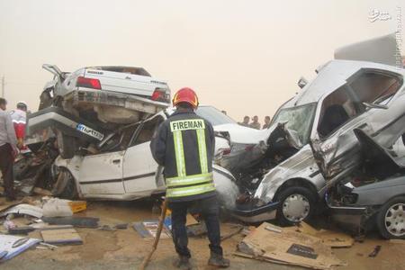این حادثه حدود ساعت ۱۲ ظهر سه شنبه در محور دیلم به طرف عامری رخ داد که باعث ایجاد ترافیک سنگین در این محور شد .نیروهای امدادی و جاده ای در اسرع وقت با تلاش مسیر را بازگشایی کردند و ترافیک این مسیر روان شد.علت حادثه در حال بررسی است ولی بدلیل گردو غبار وسرعت بالای خودروها وبا برخورد به یکدستگاه کامیون رخ داده است.