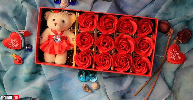جعبه خرس و گل قرمز هدیه مناسب برای ولنتاین