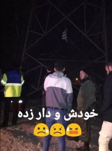 عکس خودکشی جوان با طناب دار از بالای دکل برق در قم