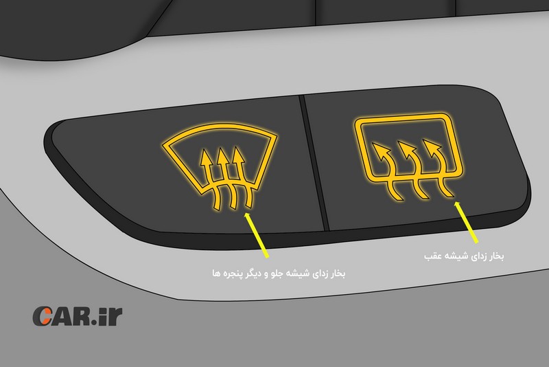 – در خودروهایی که فاقد سیستم بخار زدا هستند، به منظور کاهش رطوبت داخل کابین، سیستم تهویه هوا را روشن کنید(دمای تنظیم شده میتواند گرم یا سرد باشد…)همچنین سیستم گردش هوا داخل کابین را خاموش کرده و خروجی باد را نیز به سمت بالا (شیشه ها) تنظیم کنید. افزایش سرعت فن تهویه نیز به افزایش سرعت خشک شدن بخار شیشه ها کمک خواهد کرد.
