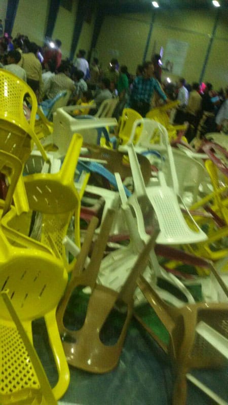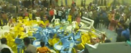 جمعیت زیاد حاضر در سالن که با وعده حضور نرگس محمدی بلیط تهیه کرده بودند وقتی که متوجه می شوند قرار نیست وی به روی سن بیاید شروع به اعتراض می کنند که در این بین اعتراضات به اغتشاش ، زد و خورد و آسیب رساندن به وسایل سالن می شود.