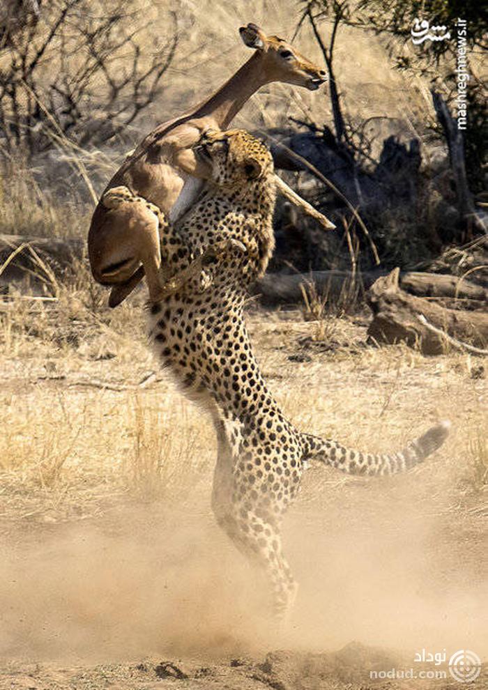 تصویری حیرت انگیز از لحظه شکار یوزپلنگ ! + عکس