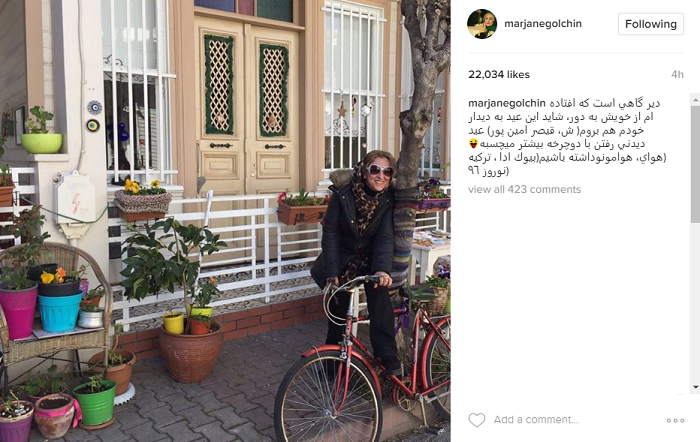 عکس بازیگرانفروردین 12, 1396 عکس|دوچرخه سواری خانم بازیگر در فرنگ مرجانه گلچین یازیگر سینما و تلویزیون تصویری از خود در کشور ترکیه منتشر کرد. Tags بازیگرعکسمرجانه گلچین