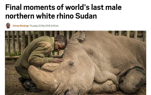 آخرین کرگدن سفید جهان درگذشت و نسل این گونه هم بواسطه طمع انسانها منقرض شد. تنها وقتی آخرین درخت بمیرد و آخرین رودخانه مسموم شود و آخرین ماهی شکار شود، انسانها خواهند فهمید که نمیشود پول را خورد!