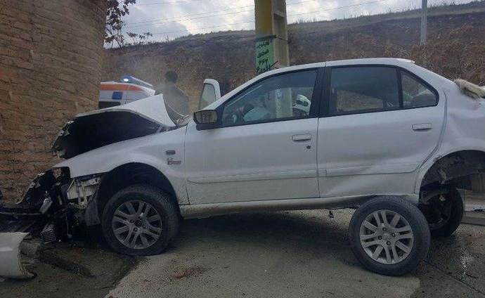 مچاله شدن محکم ترین خودروی ساخت ایران در تصادف با تیر برق