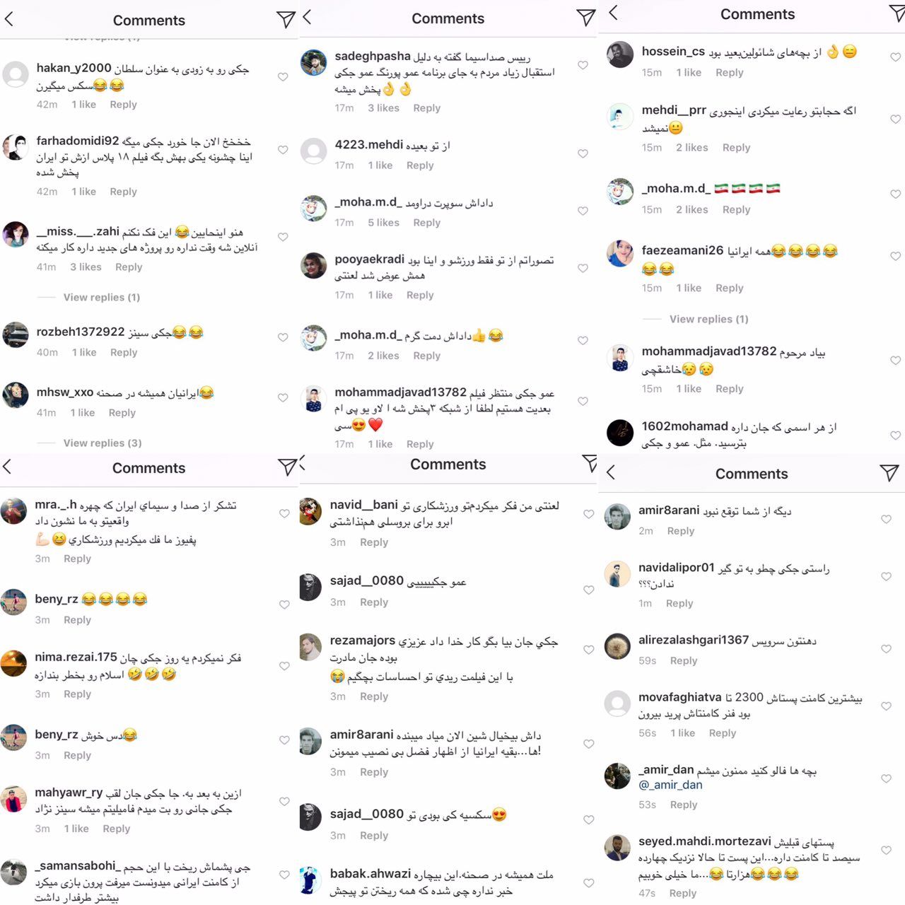 با این حجم از کامنت ایرانى، جکى چان اگه میدونست میرفت پورن استار میشد بیشتر طرفدار داشت😂