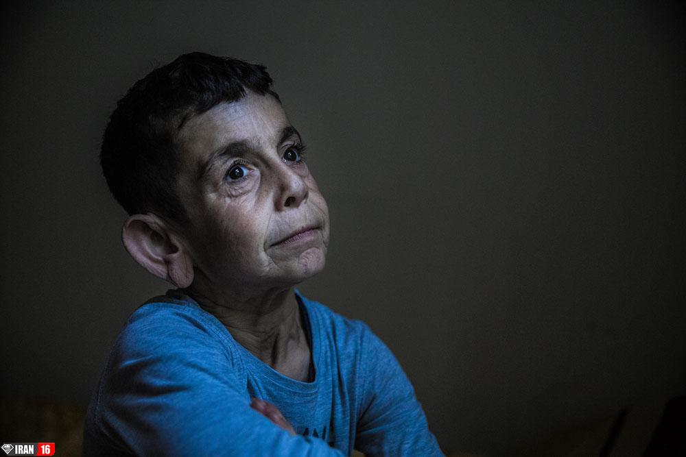 بله! شاید بگویید که زاویه نور و موقعیتی که عکاس به سوژهاش داده و از همه مهمتر بیماری محمد باعث ایجاد این حالت شده باشد. اما نه! به چشمها نگاه کنید. حالت پوست را شاید بتوانیم به تاثر بیماری که باعث تشکیل نشدن الیاف الاستین میشود، منتسب کنیم، اما چشمها …