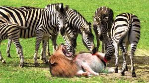 حیات وحش – گورخرها برای حمله به شیر برای نجات تولههایش – حمله حیوانات